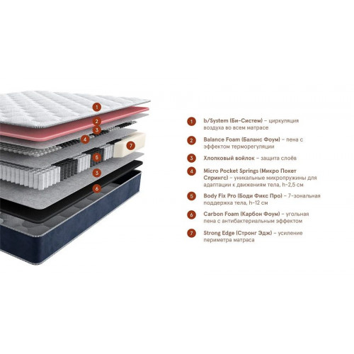 | Наполнитель | Balance Foam, хлопковый войлок, НПБ Micro Pocket Springs, Body Fix Pro, Carbon Foam, Strong Edge |