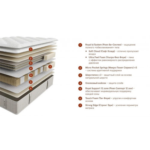 Наполнитель MicroPocketSprings, Шерстепон х 2, хлопковый войлок, Royal Support 12 zone, Touch Foam, Strong Edge