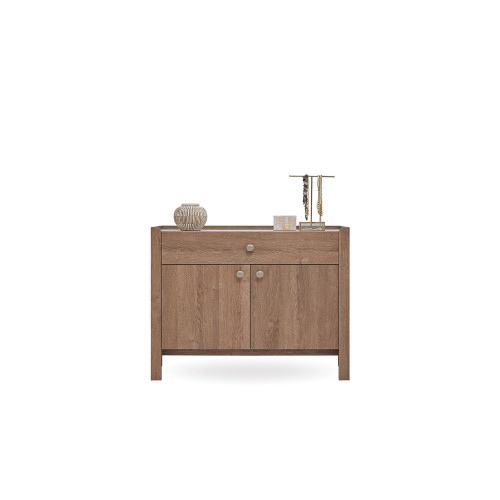 Удобное изголовье обеспечивает плавный переход в спальную зону, а функциональные комоды предлагают практичные варианты использования. Столешница из травертина с дизайном, напоминающим бассейн, добавляет глубины комоду.