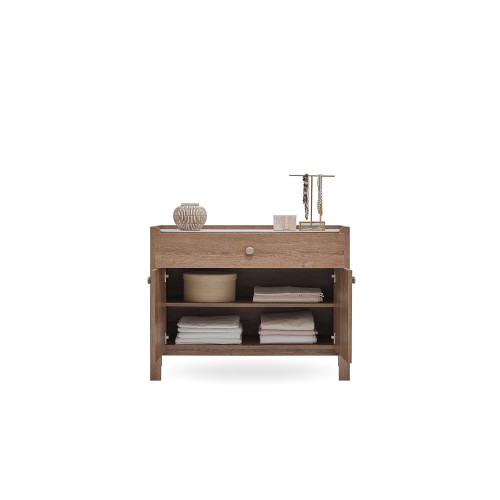 Спальный гарнитур Veneta, являющийся ключом к простой, но впечатляющей атмосфере, отличается сбалансированным сочетанием текстур натурального ореха и травертина. Металлические ручки цвета норки и дизайн ножек, выдержанный в едином стиле серии, говорят сами за себя в каждом предмете.