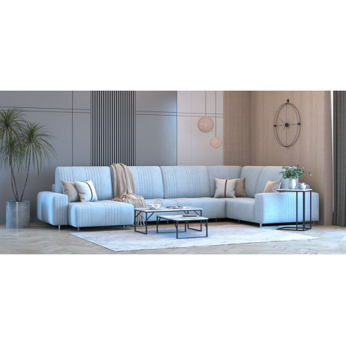 Диван Угловой, Уолтер УП с оттоманкой (1000 секция + 1000 секция + оттоманка + угл. секция + 1000 секция)Angora N sky