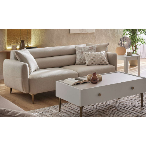 Комплект диванов Lumina добавит комфорта и элегантности вашему дому благодаря эргономичной спинке и подвижному механизму. Эта серия, выполненная в кремовых и норковых тонах, отличается современным дизайном благодаря обивке с текстурой льна, бронзовым металлическим ножкам и фактуре кожи.