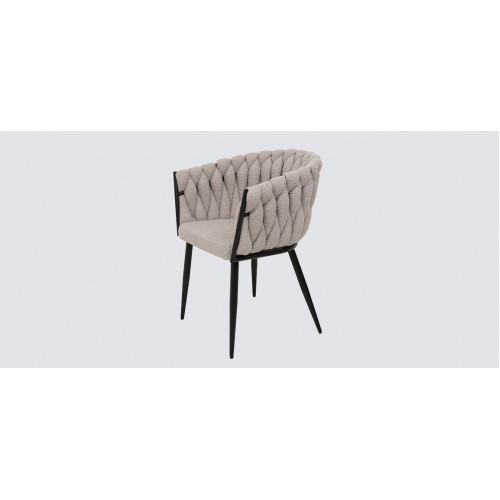 Дизайнерское кресло Джоли отличается замысловатым переплетением ткани в спинке, плавно переходящей в подлокотник.