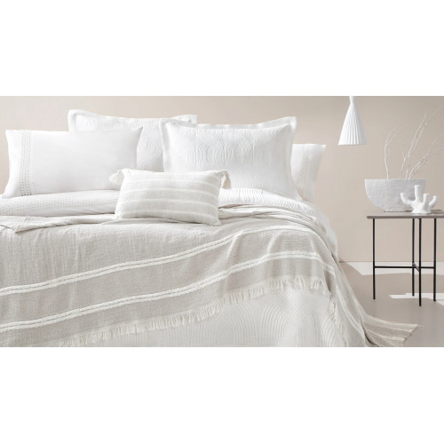 Сочетая спокойные и простые цветовые переходы с современными линейными узорами, комплект Nola Infinity создает насыщенные визуальные детали в спальнях благодаря рельефным узорам и аппликации из кисточек.