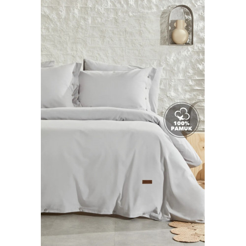 КПБ TEK KISILIK PLAIN RANFORCE YIKAMALI NEVRESIM TAKIMI - GRI