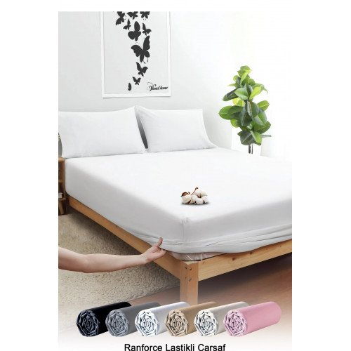 Простыня на резинке 180X200 EXP PLAIN RANFORCE ENZIM YIKAMALI LASTIKLI CARSAF - BEYAZ